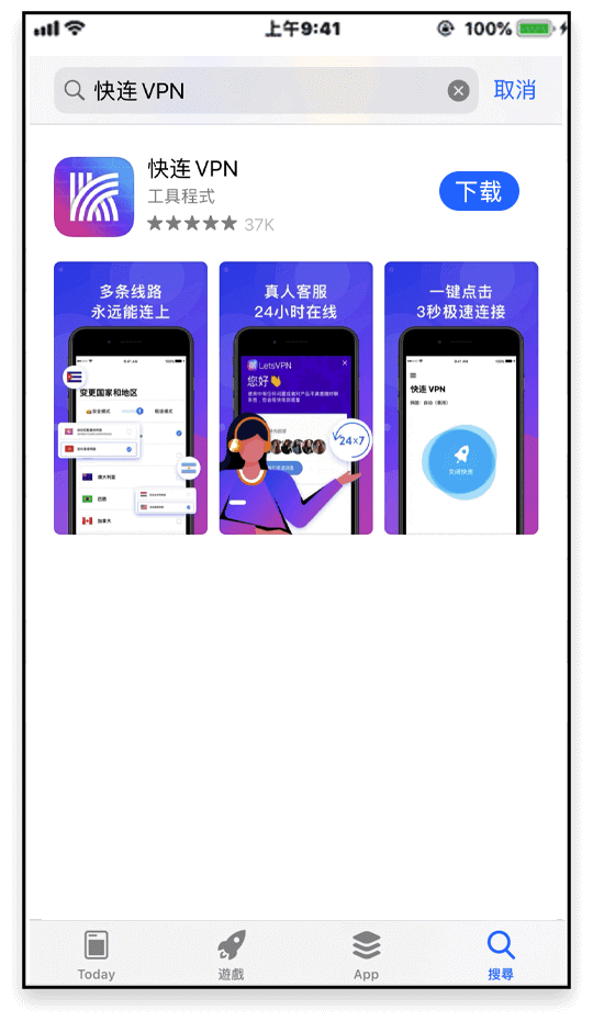 下载完成快连 VPN后,您也可以随时把 Apple ID 的地区改回 <中国大陆> ,当然您也可以在香港商店中下载各种海外热门应用,快连全部都能支持!